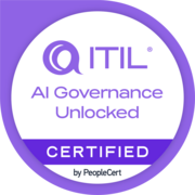 The ITIL AI Governance Unlocked digital badge confirms that the holder has developed a strong understanding of how to design, assess, and apply effective governance practices for AI-enabled systems. It covers the core principles of AI governance, including risk management, ethical safeguards, data governance, transparency, and regulatory alignment, as well as how to integrate AI oversight within existing IT service management (ITSM) structures. The knowledge and skills are based on insights from ITIL guidance, AI governance frameworks, and leading industry practitioners.